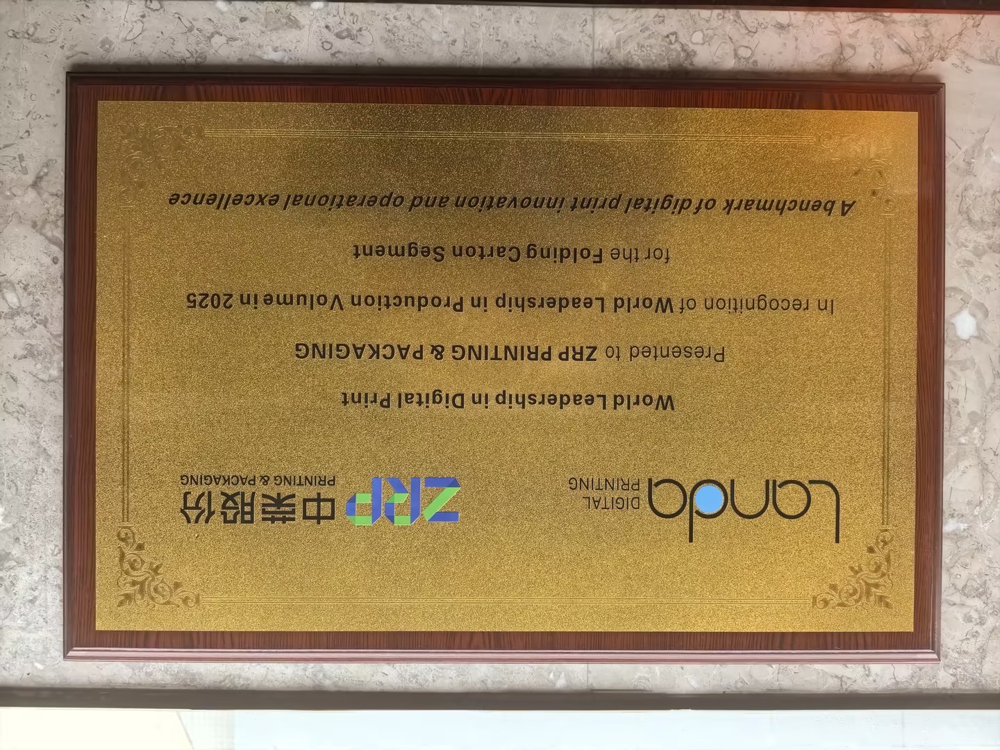 丙午马年新年前夕,国际数字印刷技术领军企业——澜达数字印刷公司的领导团队专程到访中国,为中荣印刷集团股份有限公司(以下简称“中荣股份”)隆重颁发 “折叠纸盒数字印刷全球领导力奖” 。这份来自国际权威合作伙伴的高度认可,也是我们在数字印刷领域技术实力认证。